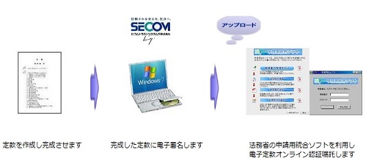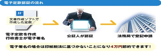 電子定款を利用するためには予め電子証明書を取得しておく必要があります。その他、Microsoft Word 等で作成した定款をPDF(Portable Document Format)ファイル形式に変換するための変換ソフトが必要になります。